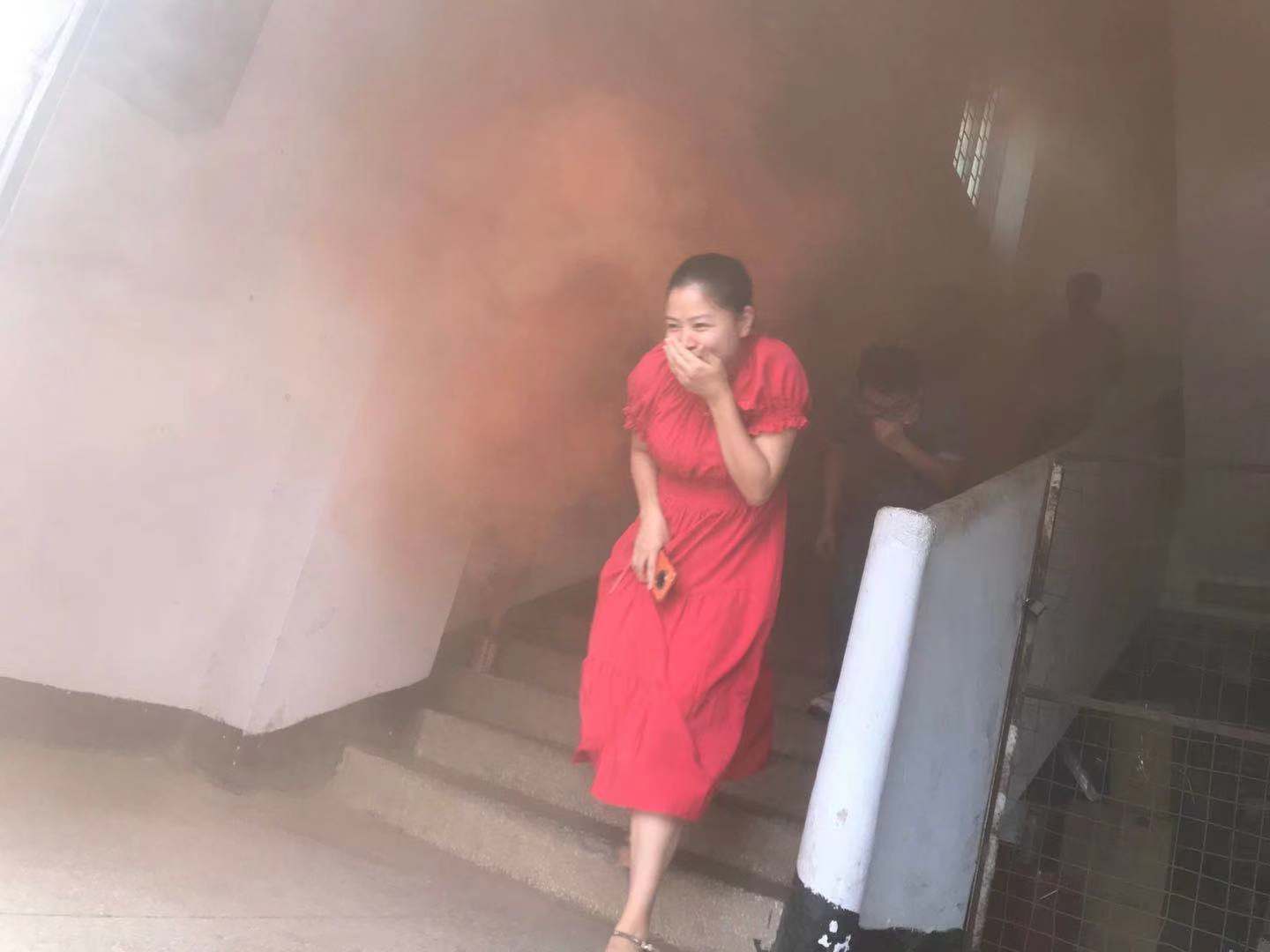 8月31日下午三點(diǎn), 隨著一股濃煙飄進(jìn)辦公樓內(nèi),急促刺耳的警報(bào)聲響起,消防應(yīng)急疏演練正式開始。有同事在樓道旁引導(dǎo)員工快速疏散,每個(gè)人各捂住口鼻,低頭有序沿著安全通道,撤離到露天地帶。集合完畢后,各部門清點(diǎn)人數(shù),并上報(bào)。整個(gè)演練過程安全、快速,僅用時(shí)3分鐘。