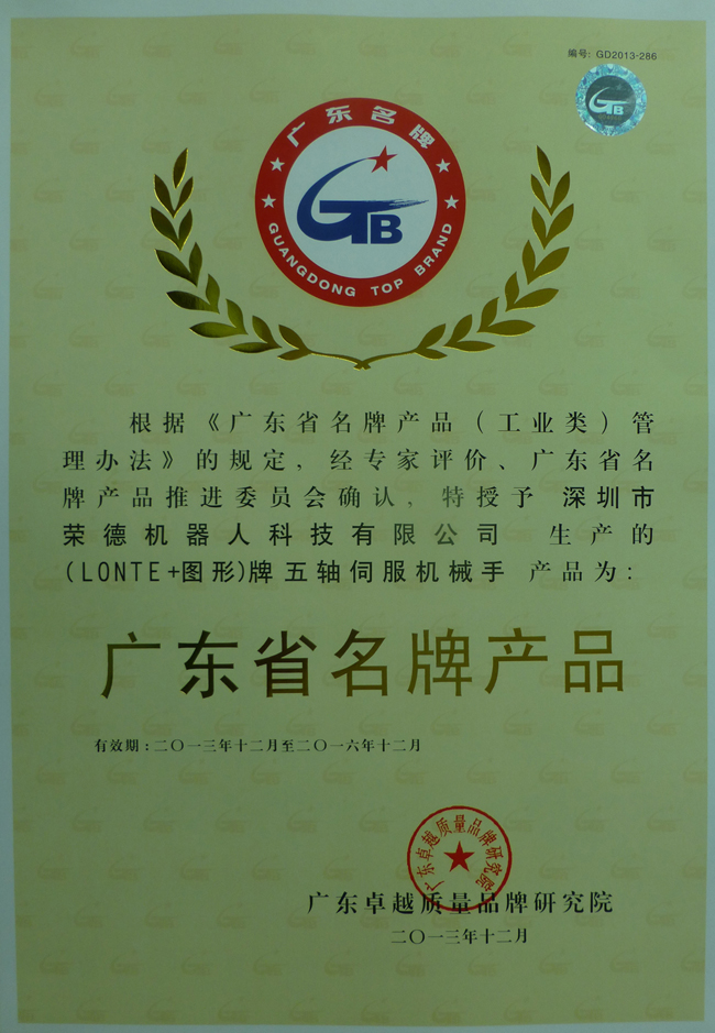 廣東省名牌產(chǎn)品申報(bào)可以說是相當(dāng)嚴(yán)格,體現(xiàn)了該榮譽(yù)的嚴(yán)肅性、公正性。這也充分證明了深圳市榮德機(jī)器人科技有限公司的綜合實(shí)力以及客戶對(duì)榮德公司的滿意程度。