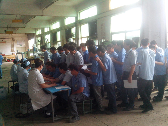 近日公司組織了全體員工的年度體檢活動,把關(guān)愛員工身體健康的措施進(jìn)一步落實(shí)。醫(yī)院體檢車直接開到公司大院內(nèi)對全體員工進(jìn)行體檢。當(dāng)員工井然有序地排隊(duì)抽血、拍片、查血壓等項(xiàng)目時,也深深體會到公司對他們的呵護(hù)。相信榮德公司的全體伙伴能夠珍惜這份工作,在工作當(dāng)中努力付出,為客戶提供高品質(zhì)、高性價比的噴涂機(jī)器人、自動化生產(chǎn)線,最大限度地達(dá)到客戶滿意。