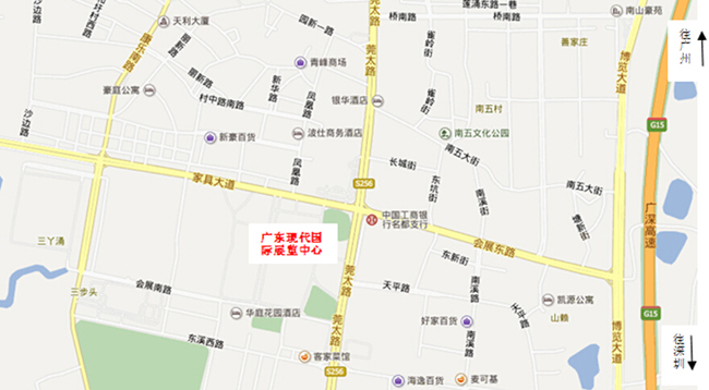 深圳或廣州方向走廣深高速厚街出口下高速,轉(zhuǎn)“博覽大道”再轉(zhuǎn)“會展東路”,到達莞太路和家具大道交叉處即到。導(dǎo)航:廣東現(xiàn)代國際展覽中心、嘉華大酒店