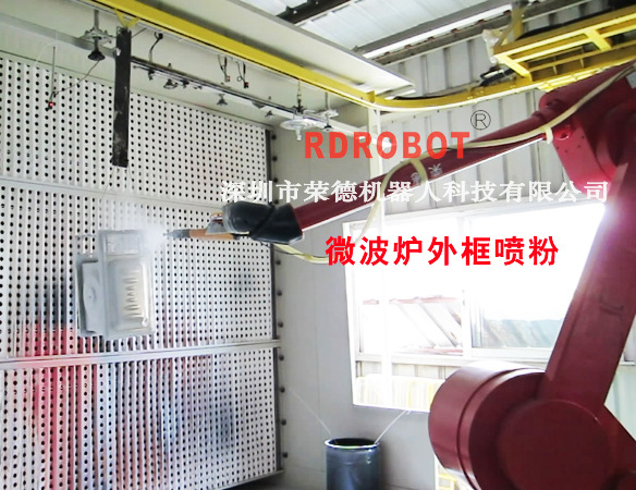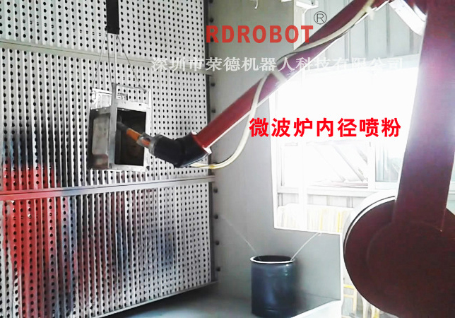 微波爐內(nèi)徑-外徑自動噴粉機器人-懸掛式噴粉生產(chǎn)線